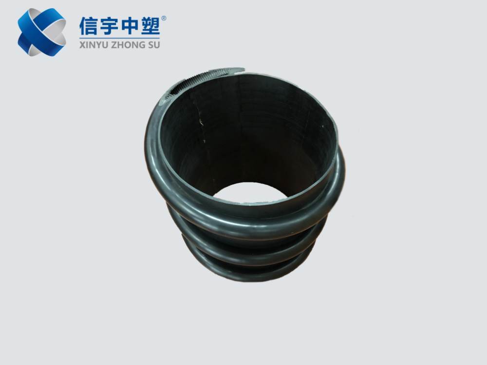 “信宇中塑”牌HDPE中空壁纏繞管(B型)是采用高密度聚乙烯(HDPE)樹脂為主要原材料,在熱熔度狀態(tài)下,通過纏繞成型工藝制成的一種新型柔性管材。產品內表面光滑,外表面為中空螺旋形肋結構。